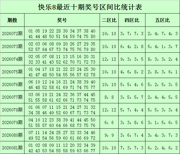 福彩悦目8第2026081期开奖归来:01 02 08 09 11 12 20 32 34 39 42 43 53 54 55 58 59 63 66 77,其中奖号二区比为10:10,四区比为7:3:7:3,五区比为6:2:4:6:2,除2尾数比为10:10,除4尾数比为4:4:6:6,除5尾数比为2:3:5:5:5。