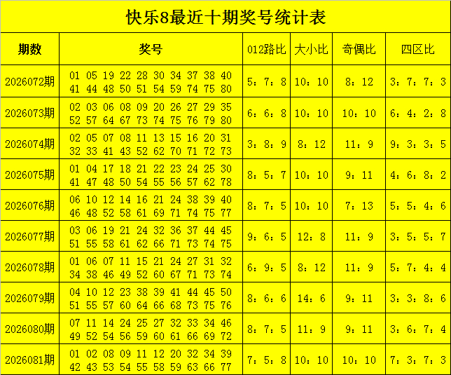 福彩情景8第2026081期开奖回想:01 02 08 09 11 12 20 32 34 39 42 43 53 54 55 58 59 63 66 77,其中奖号012路比为7:5:8,和值为738,跨度为76,奇偶比为10:10。