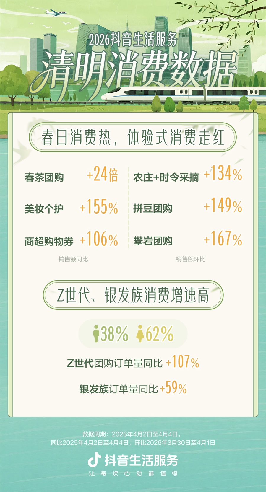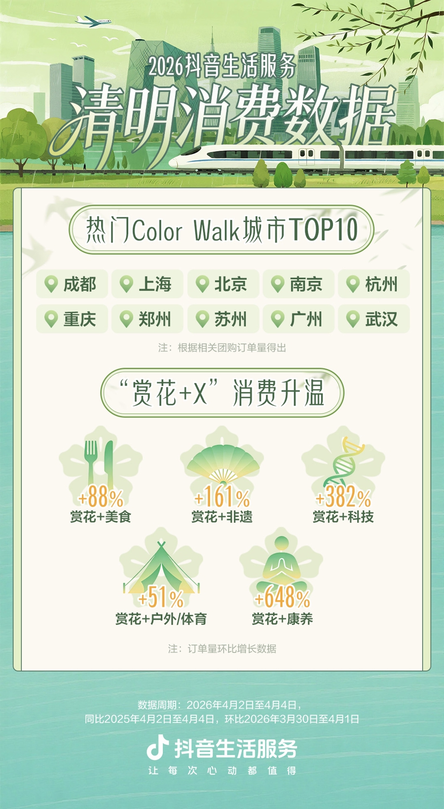 晴明假期终结,赏花游、乡村游、体验式破费迎来热潮。抖音活命处事晴明破费数据走漏,“春日Color Walk”关连话题冲破7.5亿次,假期抖音团购销售额同比增长54%。其中,餐饮团购销售额同比增长超42%,幽闲文娱关连团购销售额同比增长76%,酒旅团购销售额同比增长38%、环比节前增长54%。赏花踏青以外,餐饮、住宿、幽闲文娱、零卖等多业态破费也在同步升温。