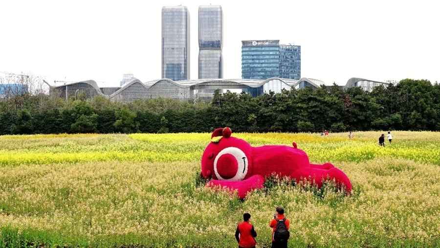 在钱江世纪公园,也藏着一派彩色油菜花田,不是寻常的金黄,还点缀着粉色、白色、橘红色、粉紫色等多个色系的彩色油菜花品种。这片花海是免费灵通的,春风讲理豪配投资,沿途踏青去。