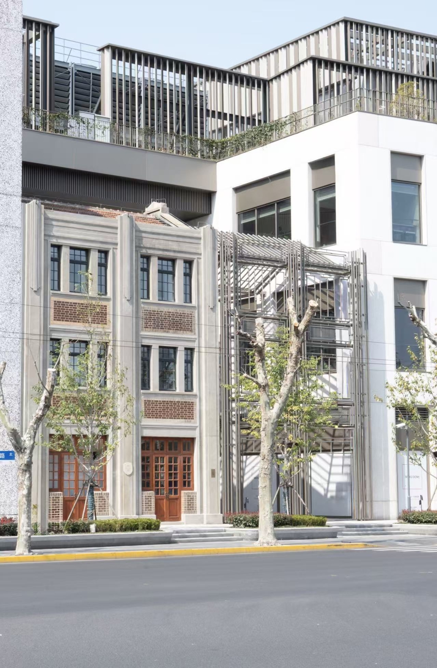 转移后的旧居,面向西藏南路,与“青藏会客厅”的业态筹商殊途同归。为了让历史建设更当然地融入新寰宇东台里的全体氛围,旧居的近邻空间,以中空的金属框架结构为缱绻认识,让历史建设的红砖与金属、旧宅与新楼当然过渡。