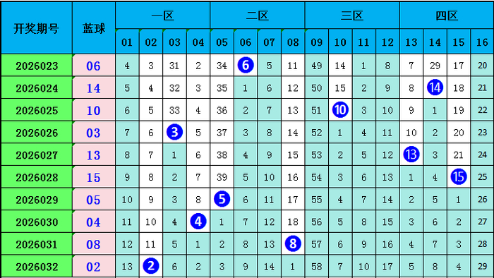 上期蓝球开出号码02,近十期蓝球在一区开3枚,二区开出号码2枚,三区开出2枚,四区开出3枚,区间比3:2:2:3,本期保举蓝球出当今三区,要点存眷12。