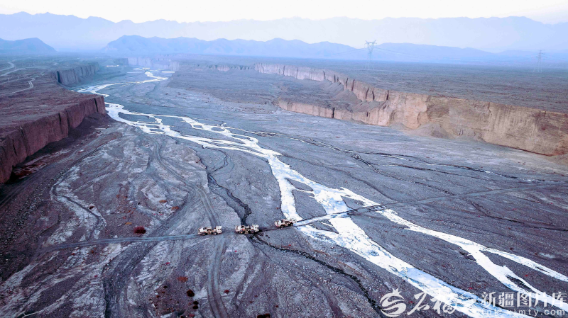 高精度可控震源车在山前戈壁施责任业。王健 摄
