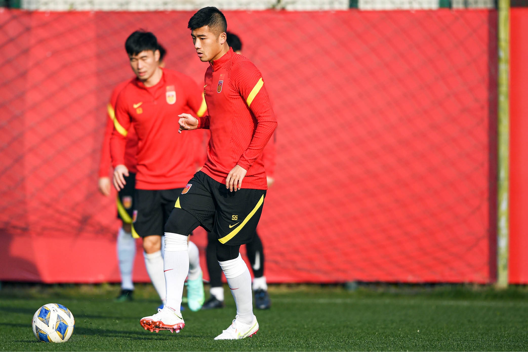 2022年1月,李圣龙(右)参加中国国度须眉足球队2022年第一期集训。
