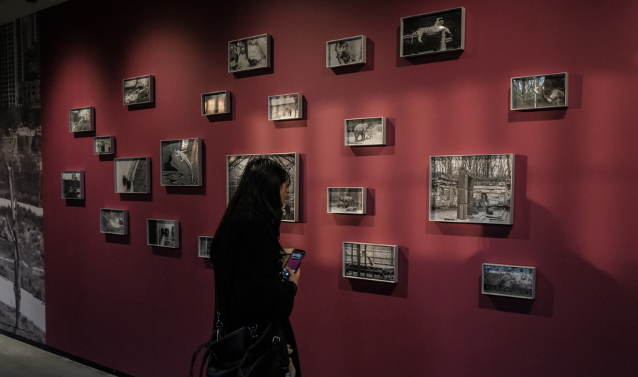 自2015年起,涌融资本柴觅开始走访不同城市的动物园,并以此为素材展开创作。在她看来,动物园不仅是动物栖居的场所,更承载了人与动物之间复杂的观看关系。她通过手写、涂改、打印与扫描等方式,对原有图像进行“再书写”,赋予其时间痕迹与个人印记。作品中反复出现的“黑色遮挡条”,灵感来自罗兰·巴特《明室》中“刺点”的概念,在画面中形成一道“视窗”,既遮挡了部分信息,也提示了一种想象——那些被凝视的动物,是否也在透过它望向我们以外的世界?