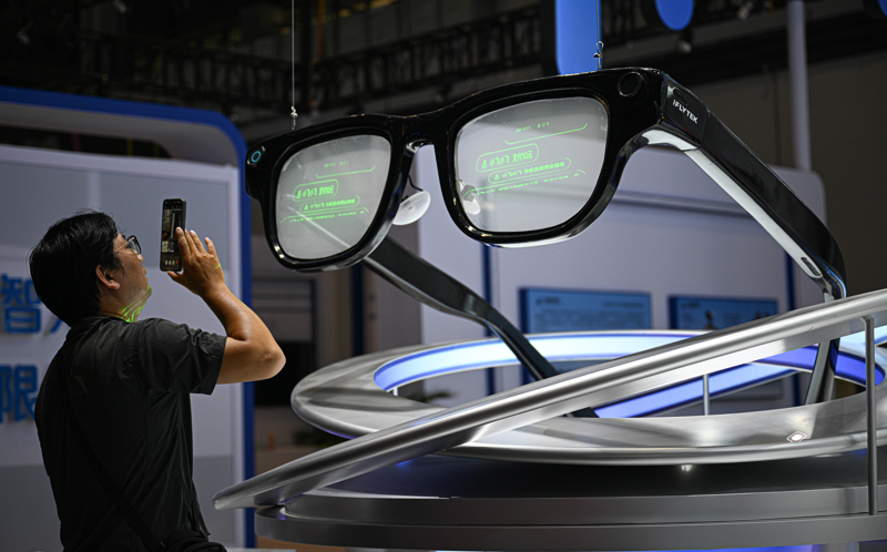 参不雅者拍摄AI眼镜模子。新华社记者 蒲晓旭 摄
