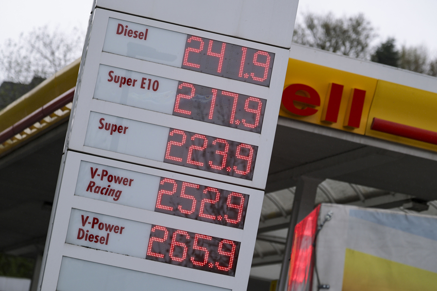 德国埃森,一家加油站的表示屏上表示燃油欧元价钱。