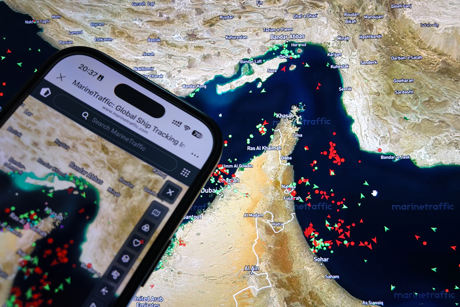 船舶跟踪软件及时展示霍尔木兹海峡的船舶交通情况。