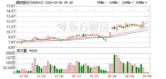 顺钠股份盘中涨停,已连收3个涨停板,纵容9:25,该股报14.88元,换手率0.48%,成交量328.20万股,成交金额4883.56万元,涨停板封单金额为6.59亿元。集合涨停技术,该股累计高涨33.09%,累计换手率为10.04%。最新A股总市值达102.79亿元,A股通顺市值101.91亿元。