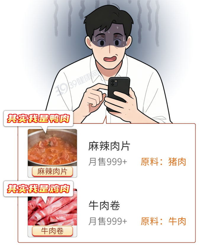 外卖平台上后堂堂标着“肥牛/牛肉”,逼迫却发现,后厨的原料包装袋配料表第一转写着:鸡肉。
