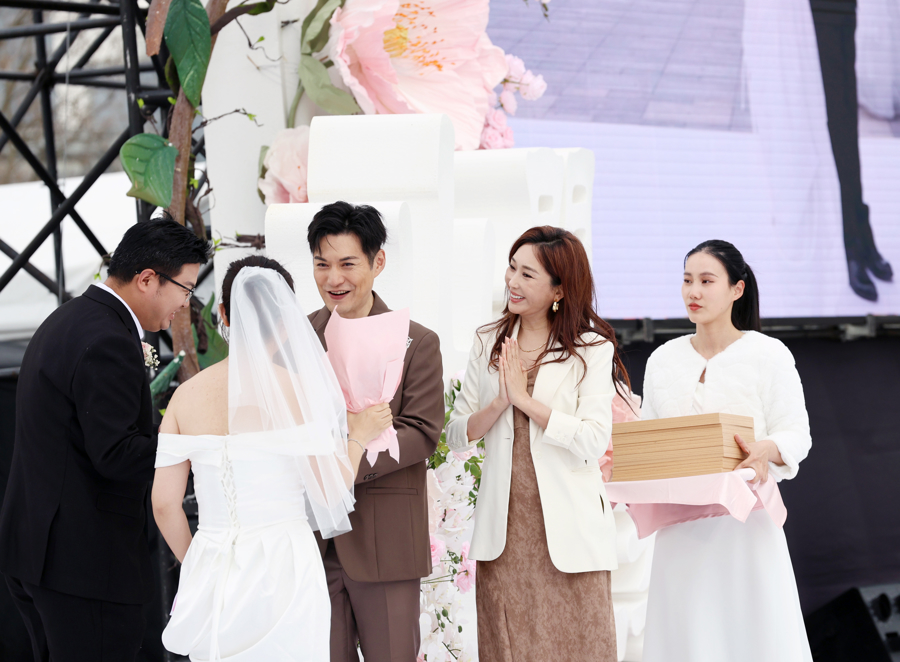 新东说念主们在奥运冠军陈云霞佳偶、科学家吴辰冰佳偶、演员严屹宽佳偶等“爱情见证官”的跟随下领取婚书,凝听嘉宾共享相守感悟、得益真诚祝贺。